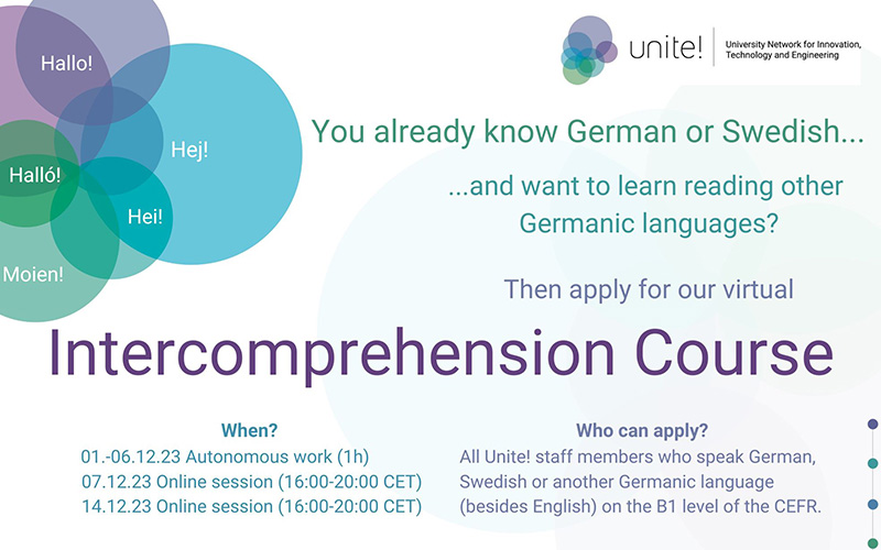 Every staff member (teachers included) of the Unite! Community, who knows or has learned German or Swedish (or another Germanic language besides English) on the B1 level of the CEFR. The maximum number of participants is 20.