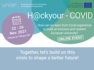 Unite! is organising an online hackathon which will take place from 22 to 26 November 2021 (5 to 7pm CET) via online Zoom meetings. It aims at getting together different groups of students of different partners’ universities to work on a collaborative project solution for the University of the Future. You have until November 15th to register and the winner will get to travel to the KTH Royal Institute of Technology Dialogue in March to present the results of the Hackathon.