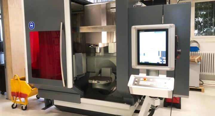 the company Ratmo, makes it possible to manufacture metal parts with hundredth-of-a-millimetre accuracy, using three translation axes (the same as the old machine) plus two extra rotation axes.