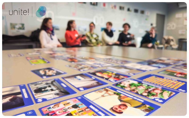 Deux ateliers ont été animé. L’un par Lucie Jiraskova, coordinatrice du Work Package 3 de Unite!, « Well being expert team ». L’autre atelier, en anglais, était animé par David Tual, directeur des langues et inter-communication à l’Université de Cambridge. Les participant·es ont travaillé en petits groupes pour reconstituer une fresque visuelle. Ce processus créatif a permis d’aborder de manière ludique et engageante des thématiques complexes telles que les biais inconscients, les stéréotypes de genre, les discriminations liées à l’origine ou au handicap, et les enjeux de l’interculturalité.