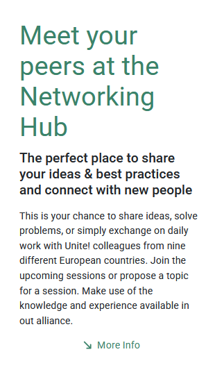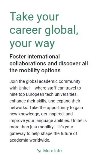 Unite! (University Network for Innovation, Technology and Engineering) est bien plus qu’une alliance : c’est un réseau d’excellence réunissant neuf universités européennes leaders, déterminées à réinventer l’enseignement, la recherche et la technologie. Notre mission ? Stimuler l’innovation, accélérer la transition durable et briser les frontières pour relever ensemble les défis mondiaux. Que vous soyez étudiant·e, enseignant·e-chercheur·e ou personnel universitaire, Unite! vous offre les outils, les connexions et les opportunités pour agir, innover et faire la différence à l’échelle internationale.