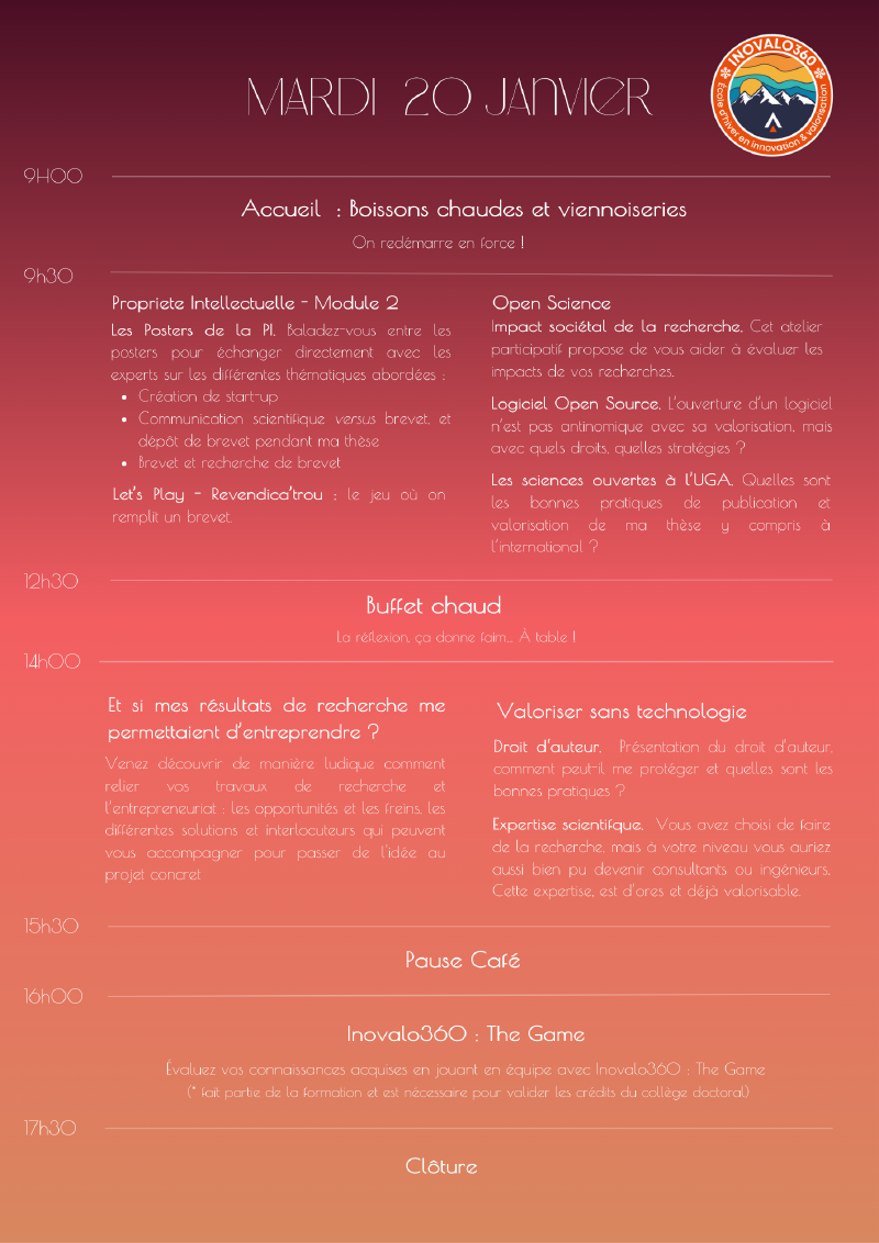 En 2026 Inovalo360 revient les 19 et 20 janvier pour vous former à la valorisation & au transfert de technologie dans toutes ces formes. Au programme, innovation, propriété intellectuelle, science ouverte et bien d'autres thèmes.