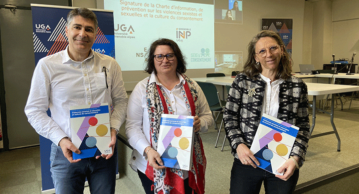 A l’occasion de la clôture du mois de l’égalité, l’Université Grenoble Alpes, Grenoble INP - UGA et ENSAG - UGA ont signé ensemble jeudi 30 mars une Charte d’information, de prévention sur les violences sexistes et sexuelles (VSS) et la culture du consentement en partenariat avec l’Association Sexe et Consentement