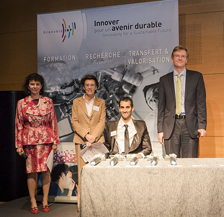 Chacun leur tour, ils ont été accueillis sur scène par Brigitte Plateau, Yannick Assouad et les directeurs, directrices de leur école pour présenter individuellement leur parcours, leur nouvelle vie professionnelle et raconter quelques souvenirs marquants de leurs années à Grenoble INP. C’est des mains de Yannick Assouad et de leur directeur que les 7 ingénieurs ambassadeurs ont reçu leur diplôme.