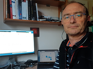 « Le métier d'enseignant-chercheur était déjà un métier un peu nomade avec du télétravail, ce n'est donc pas une révolution dans notre mode de travail. Mais l'obligation du travail à distance commence à peser, pour les cours. L’interaction avec les étudiants est plus difficile, et les nombreuses réunions entrainent un temps sur écran très important.»
