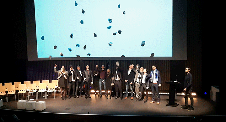 Sept ambassadeurs, représentant chacun une école et le département de formation continue se sont exprimés chacuns à leur tour, accompagnés des directeurs et directrices des écoles et du département qui leur ont remis leur diplôme.