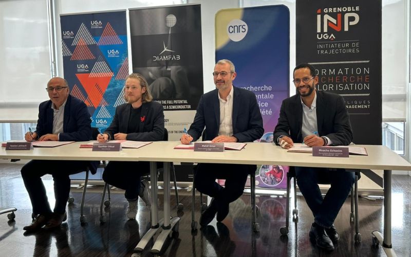 La startup DIAMFAB, le CNRS, l’UGA et Grenoble INP – UGA unissent leurs expertises en créant le laboratoire commun DIAMLAB. L’objectif de cette collaboration est de lever les verrous scientifiques et technologiques afin de faire du diamant synthétique un semi-conducteur de référence pour l’électronique de puissance.