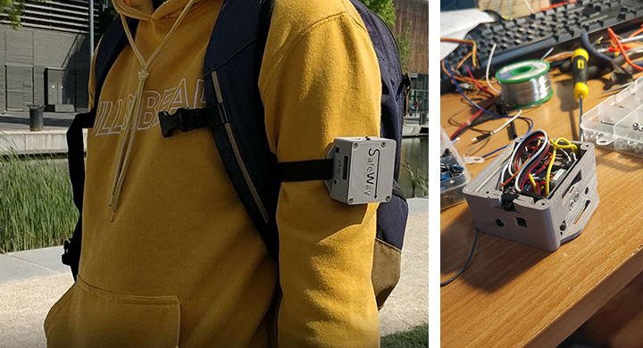 Avec SafeWay, les informations sont stockées exclusivement en local sur une carte micro SD dans le boîtier. En passant à proximité d’un usager qui s’est déclaré à risque, le système émet une alarme. Cette solution, fiable et neutre, permettrait de continuer à vivre en communauté en minimisant les risques. « Plus que dans la population générale, nous envisageons d’implanter notre dispositif dans des entreprises ou des musées pour faire respecter la distanciation sociale, » explique Nathis Côte. Le prototype, réalisé avec du matériel commercial pour une vingtaine d’euros, sera amené à évoluer par la suite vers un format de type montre connectée.