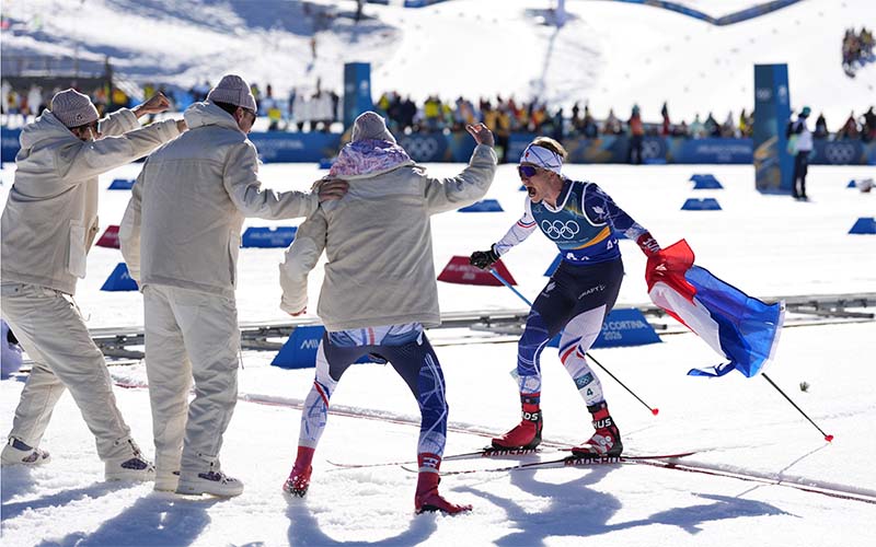 "Porter le drapeau français dans les derniers mètres, c’est beaucoup d’émotion", a déclaré Victor Lovera, dernier relayeur des fondeurs tricolores, soutenu dans son double projet par la Fondation Grenoble INP – UGA et la Fondation UGA.